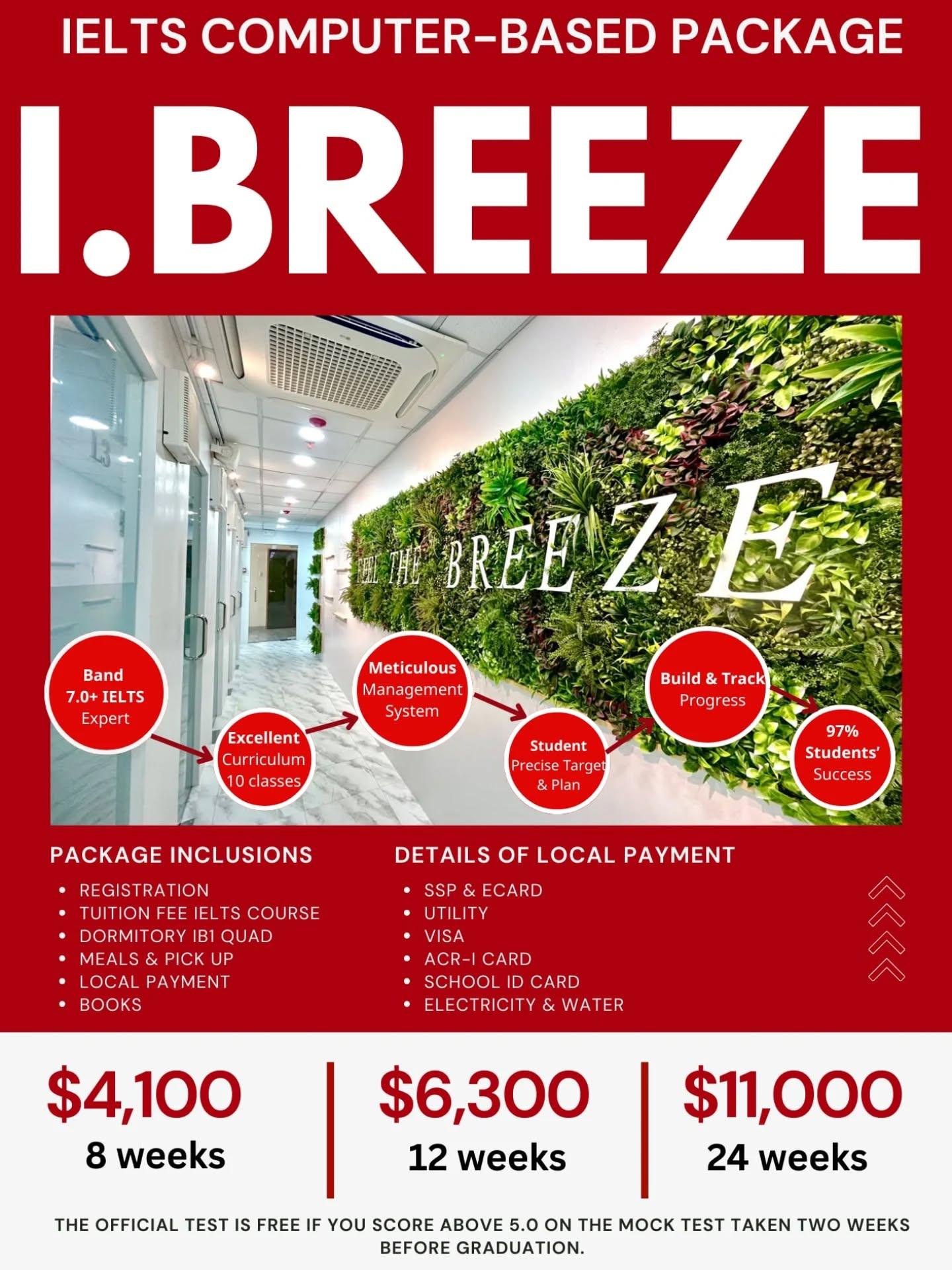 I.BREEZE International Language Center (IBreeze) сургууль нь 2013 онд байгуулагдсан Сэбү хотын шилдэг сургуулиудын нэг. 2024 онд 2 дах кампусаа ашиглалтад оруулснаар нийт 300 оюутны хүчин чадалтай болж өргөжсөн. Хотын төвийн том дэлгүүр моллууд руу 10 минут алхах зайнд байрладаг. Оюутны байр нь 1, 2, 3, 4 ортой маш тохилог өрөөнүүдтэй бөгөөд бүх өрөө нь дотруу 00, душ, хөргөгч, хувцасны шүүгээ, сеф, хичээлийн сандал, ширээ, ном хичээлийн хэрэгслийн тавиур зэрэгтэй. Усан бассейн, Оюутны дотуур байр, Кофе шоп, Анги танхимууд, Хурлын заал, Сувилагчийн өрөө, Иога, Фитнесс төв, Номын сан, IELTS шалгалтын төв, Мини маркет зэрэг байж болох бүх зүйлсийг кампус дотроо шийдэж өгсөнөөрөө хамгийн онцлог юм.